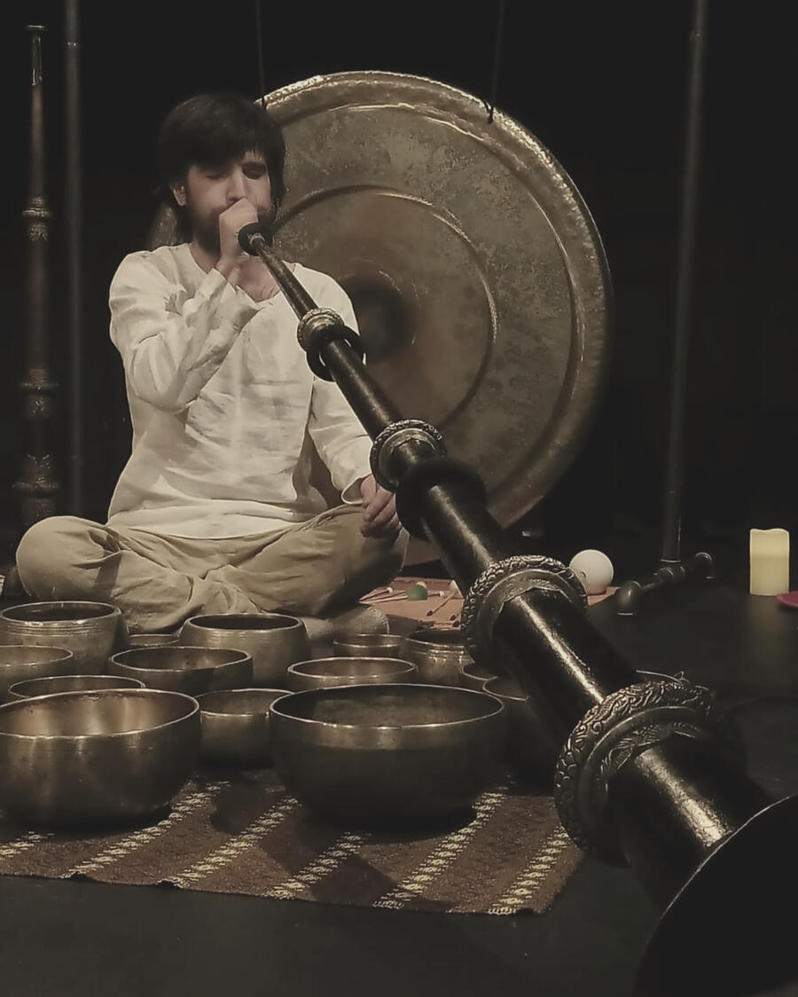 Step into the world of sound and silence with ceremonial instruments that will escort you to your inner self. Gongs, a harmonious choir of antique singing bowls, japanese temple bells, tibetan trumpets, tingshas and conch shells will give you an experience that can change your perception about sound and vibration. More than just an audition, a mysterious sound ceremony.